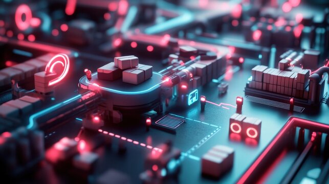 Futuristic Technology Concept with Neon Lights and Complex Circuit Patterns, Abstract Representation of Digital Fusion and Modern Data Processing Environment