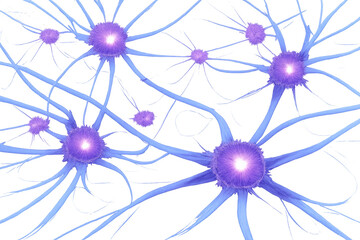 Neurons firing, communicating in a complex neural network, brain activity and cognitive function simulation, transparent background