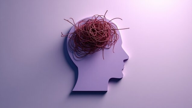 Mental Health Disorder Concept. Person Feeling Weak and Stressed. Negative Emotions. Depressed Feelings Represented Inside a Brain and Mind. Human Head and Brain Crafted with Messy Wire. Top View w...