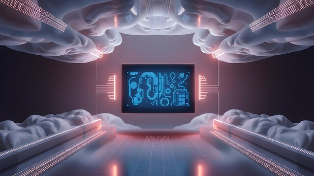 floating data node in cloud interface layer | High-performance mood with soft terminal glow and smooth composite resin