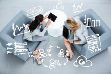 Composite image business women using tablet and computer