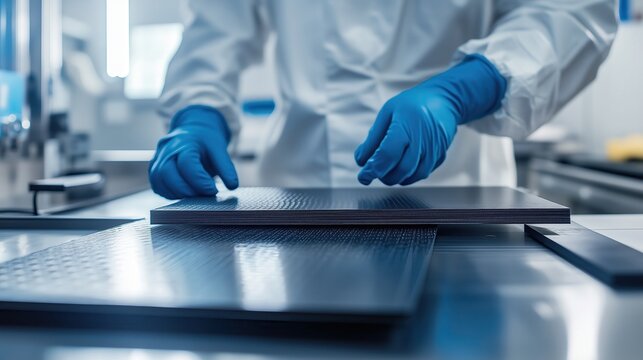 Closeup of layered carbon fiber sheets with different weave patterns and textures on industrial roll in modern workshop, advanced composite material for high performance manufacturing
