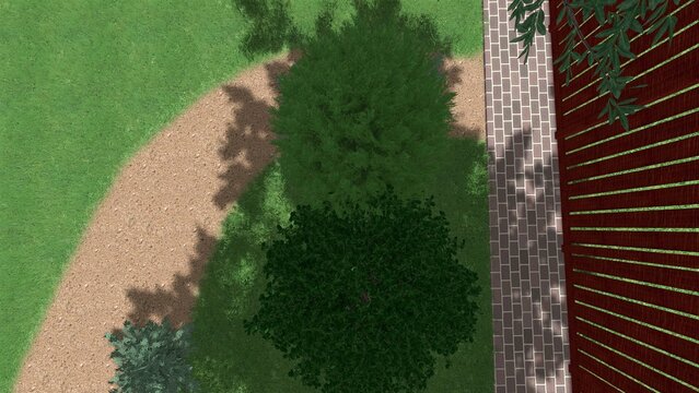 3d image of the landscape design of the home territory. Landscaping of the territory. Computer visualization of composite landscaping and landscaping solutions.