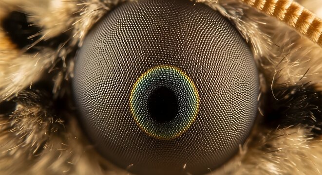 Extreme Macro Close-Up of a Moth's Compound Eye with Rainbow Refractions