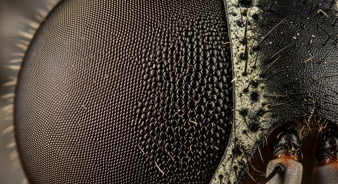 close up of a fly, Macro sharp and detailed fly compound eye surface.
