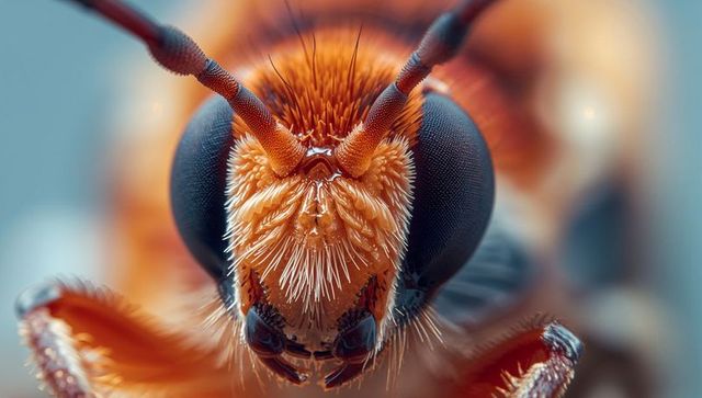 Extreme close-up of fly's head showing red compound eyes