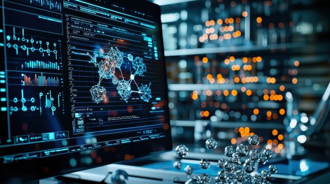Chemical analysis, Molecular visualization, medicinal molecules, molecular structures, biochemistry and chemistry concept
