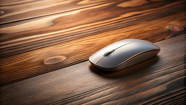 Modern wireless computer mouse on dark textured desktop