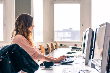 young woman in computer lab