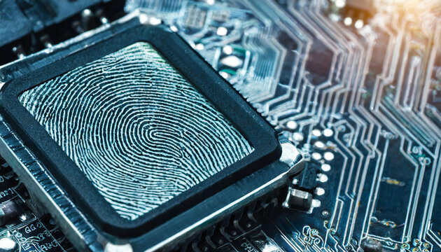 fingerprint detector, sensor pattern of papillary lines on a computer chip, fictional graphics