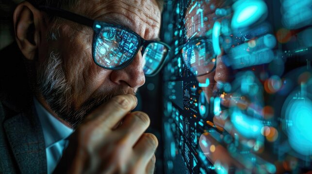 Tech-savvy professional engaging with virtual data display