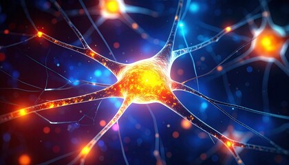 Detailed neural network with glowing neurons and interconnected synapses, representing brain activity, AI, and advanced neuroscience