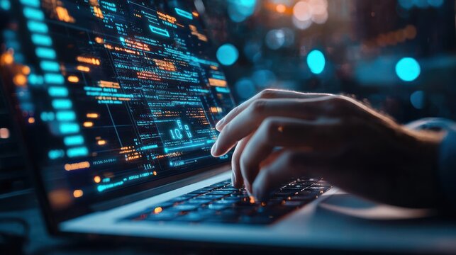 Hände beim Programmieren auf leuchtender Tastatur