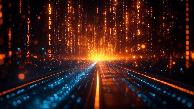 Futuristic Digital Binary Code in Motion. Generative AI