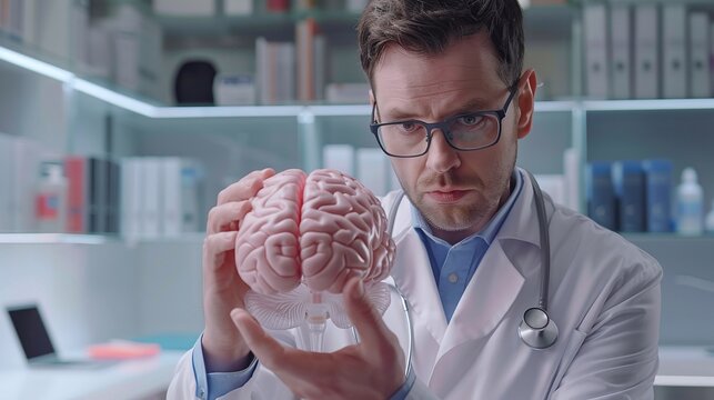empowering healthcare with artificial intelligence, doctor showcasing digital brain model using innovative ai, empowering healthcare with artificial intelligence