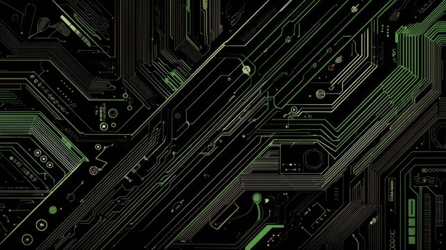 Geometric shapes in lime green tech style. Abstract pattern with interconnected network design. Futuristic illustration with vibrant colors, sleek design. High tech eco concept. Stylish background.