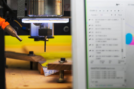operator controls computerized woodworking machine