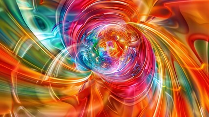 Computer screen displaying vibrant colors and graphics in a modern workspace setting