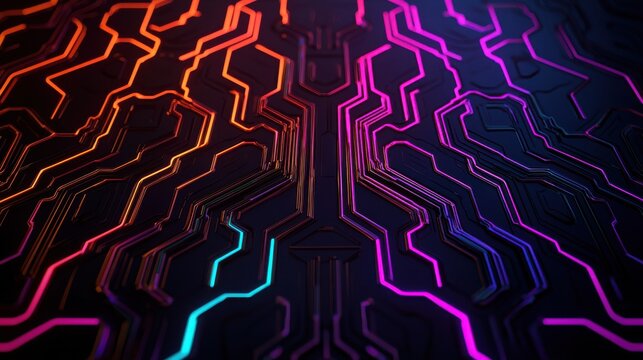 Vibrant Computer Circuit Board Illuminated by Colorful L E D Lights Display