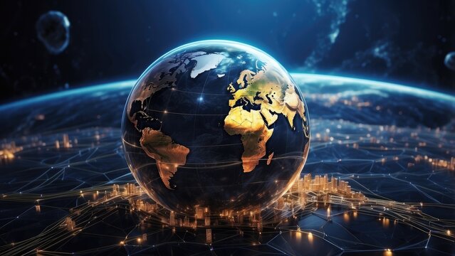 broad virtual currency, abstract business, and crypto technology. Cyber Earth is a computerized world planet in the metaverse