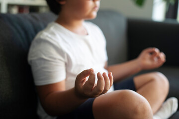 Boy sitting on couch meditating