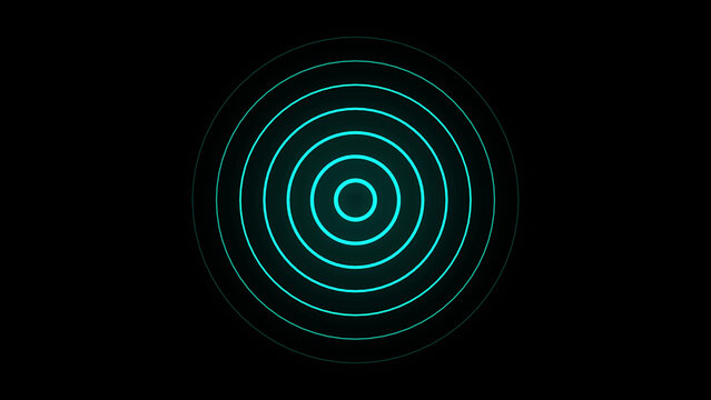 Abstract concentric circles with glowing particles on a dark blue background, conveying a technology concept. 3D Rendering