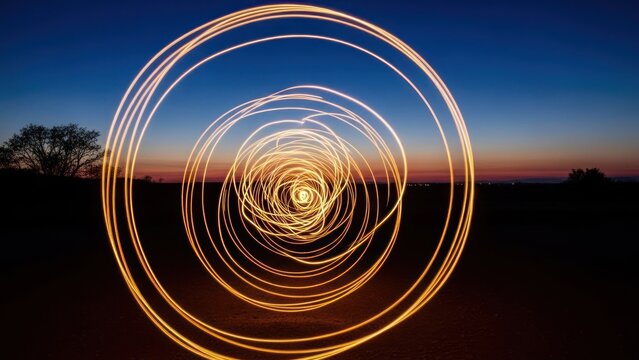 Amber vortex spiral creating hypnotic depth and motion with concentric luminous rings