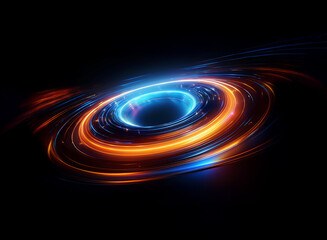 Holographic data vortex projector emitting neon spiral above futuristic led ring