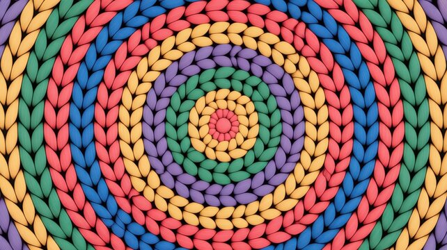 Vibrant rainbow spiral knit pattern with concentric circles of yarn