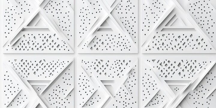 3D rendering of a white abstract background with triangles and paper-cut shapes. Minimalist geometric pattern.