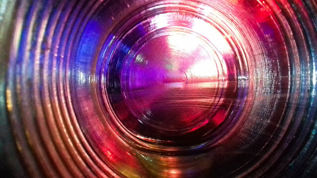 Through glass lens closeup are beautiful vivid purple colors and light with concentric circles for background graphics