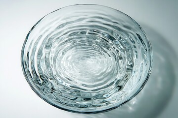 A glass bowl filled with water showing concentric ripples created by a dropped object.