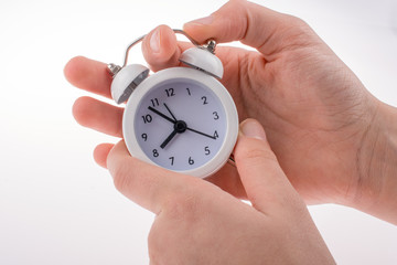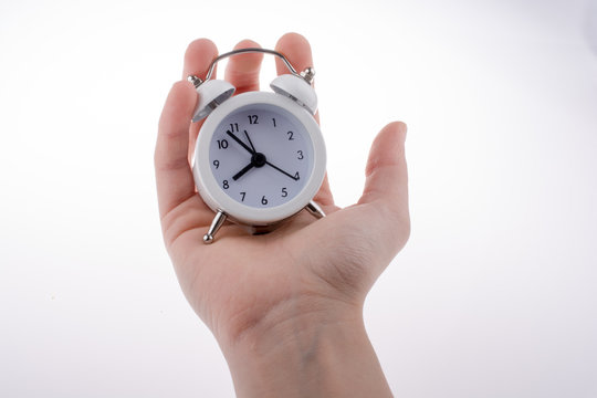 Alarm clock in hand