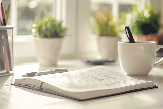 Elegant navy blue journal with a subtle metallic detail, suggesting sophistication and organization. Great for concepts like planning, writing, and reflection. Soft focus for versatile use.