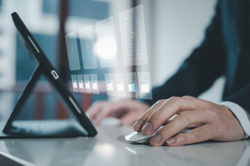 Businessman access business connection online documentation database and process automation to efficiently manage files.