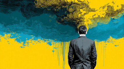 A conceptual depiction of personal problems and crises, using abstract imagery to visualize stress, confusion, and emotional turmoil in a human-centered context.