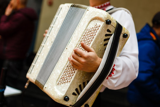 hands of happy people crowd having fun at stage at summer live rock fest, sunset