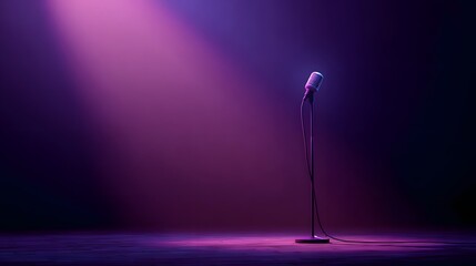 The Microphone on Stage Under Purple and Blue Spotlights Ready for Live Performance