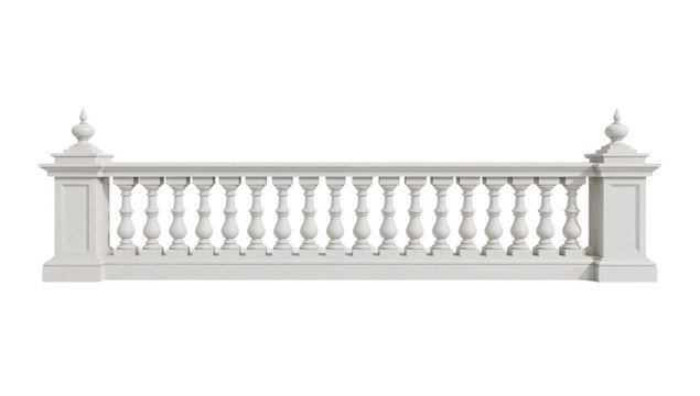 Close-up of a grey concrete balustrade isolated on white background