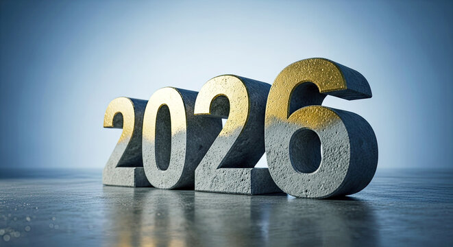 Cracked Concrete with Metallic 2026 Numbers on Gray Background