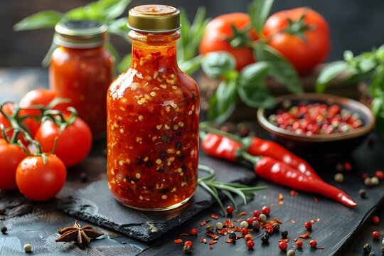 Artisanal Hot Sauce with Fresh Tomatoes and Spices for Culinary Delights