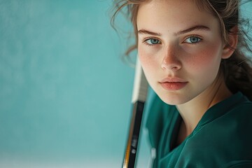 Portrait captures young girl with captivating eyes, exuding conf
