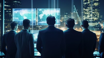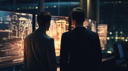 Korean presenter analyzing holographic data with futuristic hud at conference