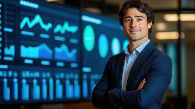 Confident Businessman with Data Visualization