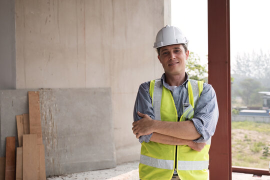 Confident Construction Worker Overseeing Building Progress Images