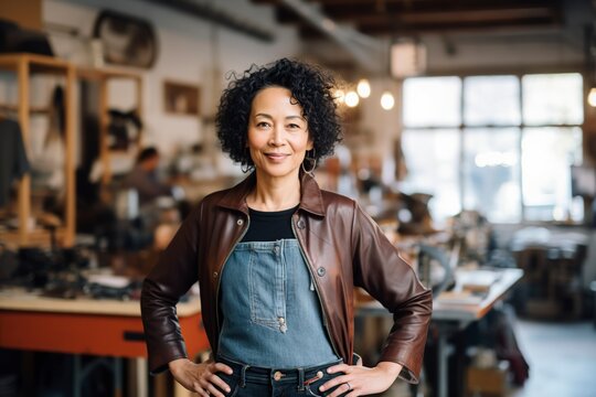 confident mature Asian woman in the workshop