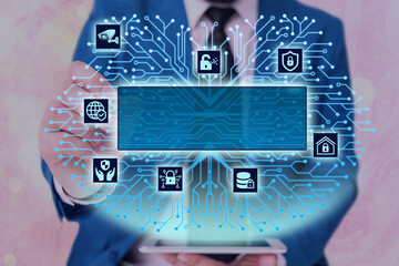 Futuristic interface displaying technology icons and concepts