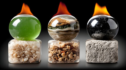 A transparent globe etched with vein-like patterns that glow faintly green, connected visually to sunbeams filtering through the forest canopy—clean energy as Earth’s circulatory system.