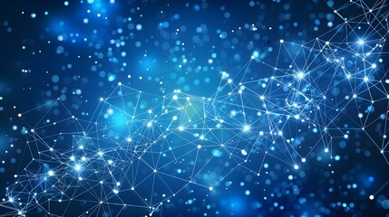 Abstract connected dots and lines on blue background