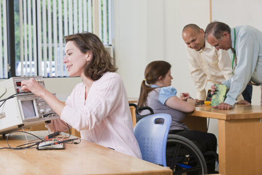 Students exploring globe and collaborating on geography project, classroom learning moment